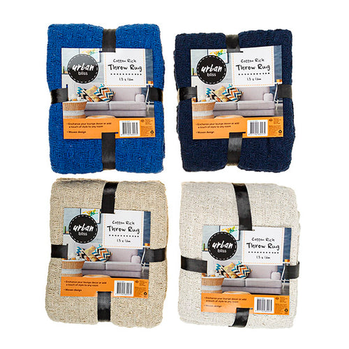 Rug Cotton Throw 4 Asstd Cols 130x160cm