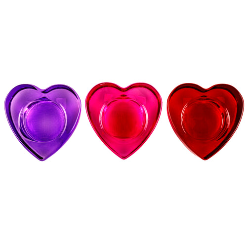 Glass Tealight Holder Heart 3 Asstd Cols 7.3x2.7cm