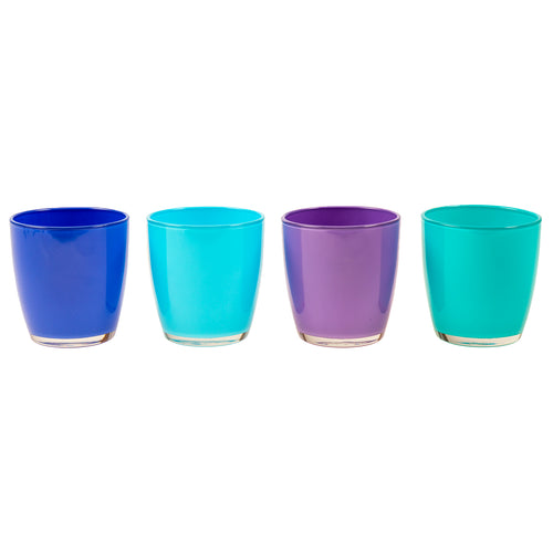 Glass Tealight Holder 4 Asstd Cols 8.5x9cm